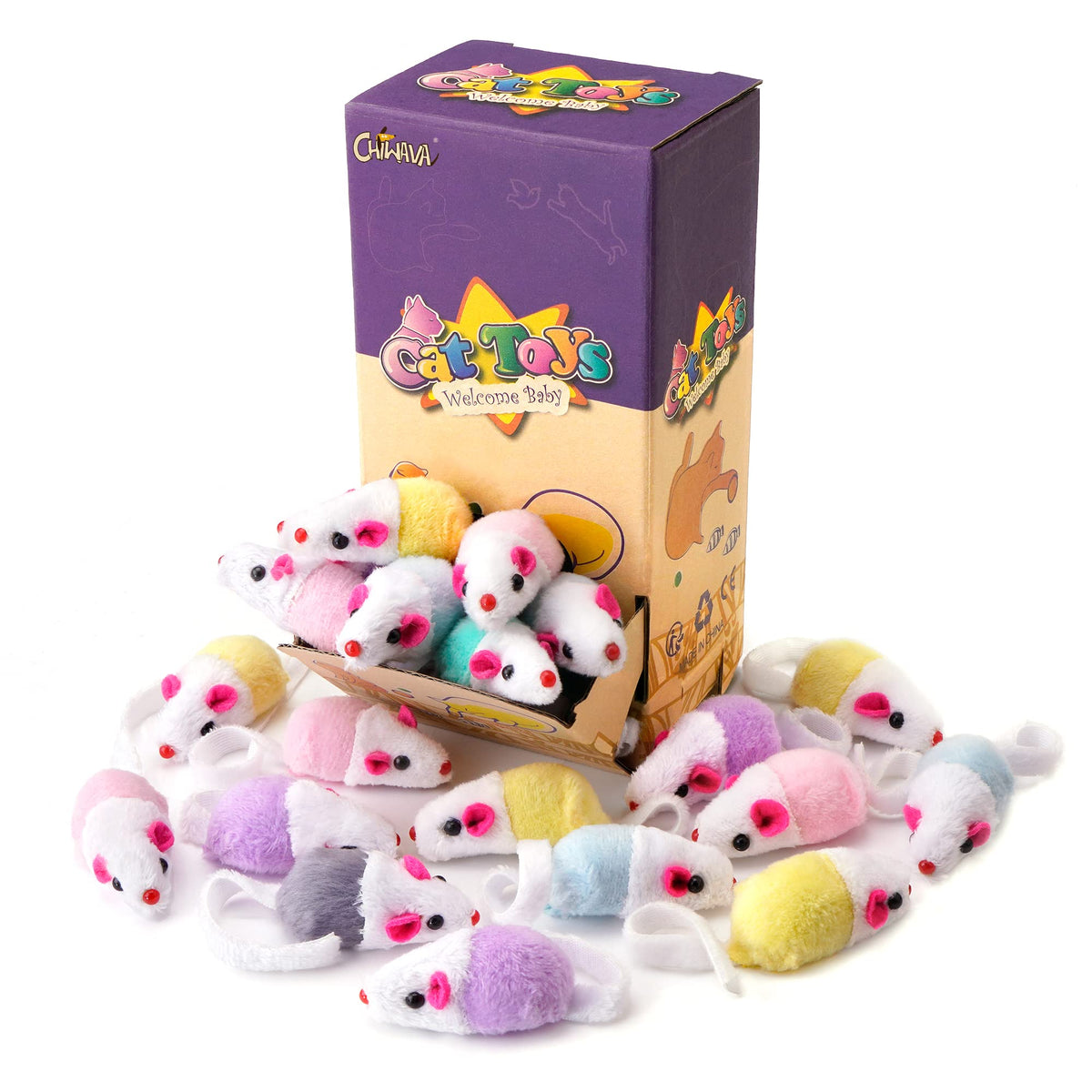 CHIWAVA Furry Little Rattle Mice suitable for small cats and kitten. It has a rustle sound when playing and will add more fun. Keep cats be attracted for hours. It's a good playmate for cat when you are away.