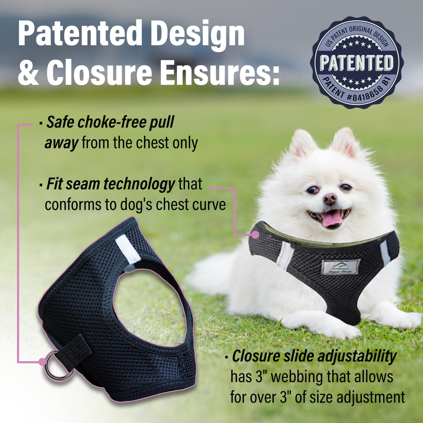 The American River Solid Ultra Choke-Free Dog Harness Is The Ideal Blend Of Safety, Comfort, And Style For Your Pet. The Large Size Is Ideal For Animals With 19''-21'' Chests And Weighing 16-25 Lbs. The Trachea-Safe Feature Distributes Pulling Pressure Over The Chest Instead Of The Neck, Safeguarding Your Pet'S Airway. The Harness Features A Double Safety Closure, Including A Touch Fastener And High-Strength Plastic Side-Release Buckle. The Harness Also Features A Double D-Ring Leash Attachment For Extra Strength And Reflective Strips For Better Visibility During Night Walks. The American River Dog Harness Is Easy To Use With Its Simple Step-In Design. Have Your Pet Step Into The Leg Holes, Wrap The Fabric Around, Secure The Touch Fastener, And Clip The Buckle. The Adjustable 3-Inch Webbing Allows For A Customizable Fit. Made From 100% Soft Mesh Polyester, This Harness Is Both Durable And Breathable, Suitable For Any Climate. The Zigzag Trim Binding Stitch Enhances Durability By Preventing Missed Stitches. For Convenience, The Harness Is Machine Washable And Should Be Line Dried To Maintain Its Quality. Offered In Multiple Sizes From Xx-Small To 3X-Large, This Harness Accommodates Dogs Of All Sizes. From From A Teacup Dog Harness To A Big Dog Harness Or Whether You Need A Small Dog Harness No Pull Or An Xxl Dog Harness, The American River Has You Covered. It'S Perfect As A Dog Harness Medium Sized Dog And A No Pull Dog Harness For Large Dogs. The Large Dog Harness No Pull Design Ensures That Even The Strongest Pullers Are Safely And Comfortably Controlled. Choose The American River Solid Ultra Choke-Free Dog Harness For A Reliable, Stylish, And Comfortable Solution That Ensures Your Pet'S Well-Being On Every Adventure.