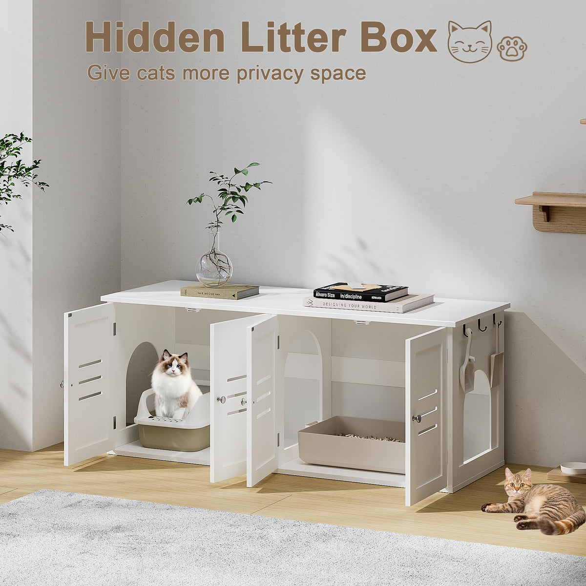 ChooChoo Cats Litter Box Enclosure, Hidden Wooden Litter Box with Double Room, Dog-Proof Cat Archway, White