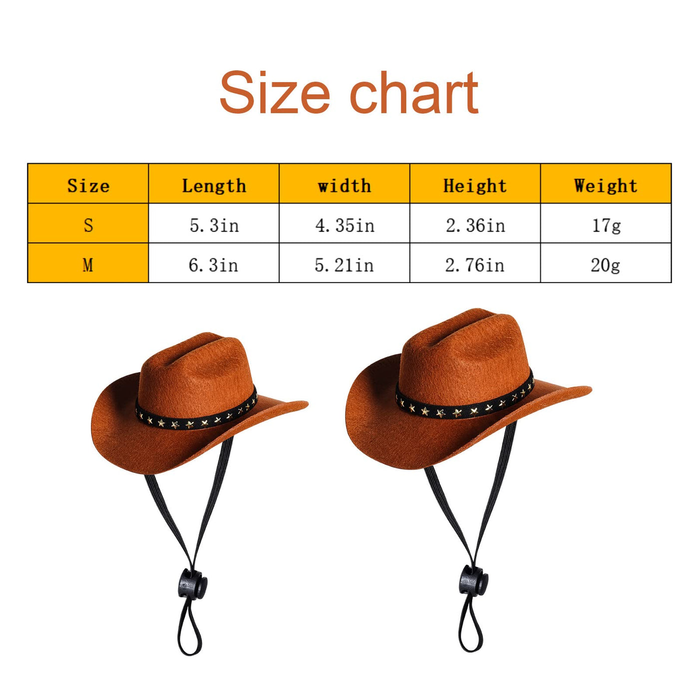Q: Is the cowboy hat suitable for all breeds of dogs and cats?A: Yes, the cowboy hat features a chin strap that allows it to fit securely on most breeds of dogs and cats. However, it's important to measure your pet's head to select the appropriate size for comfort and fit.