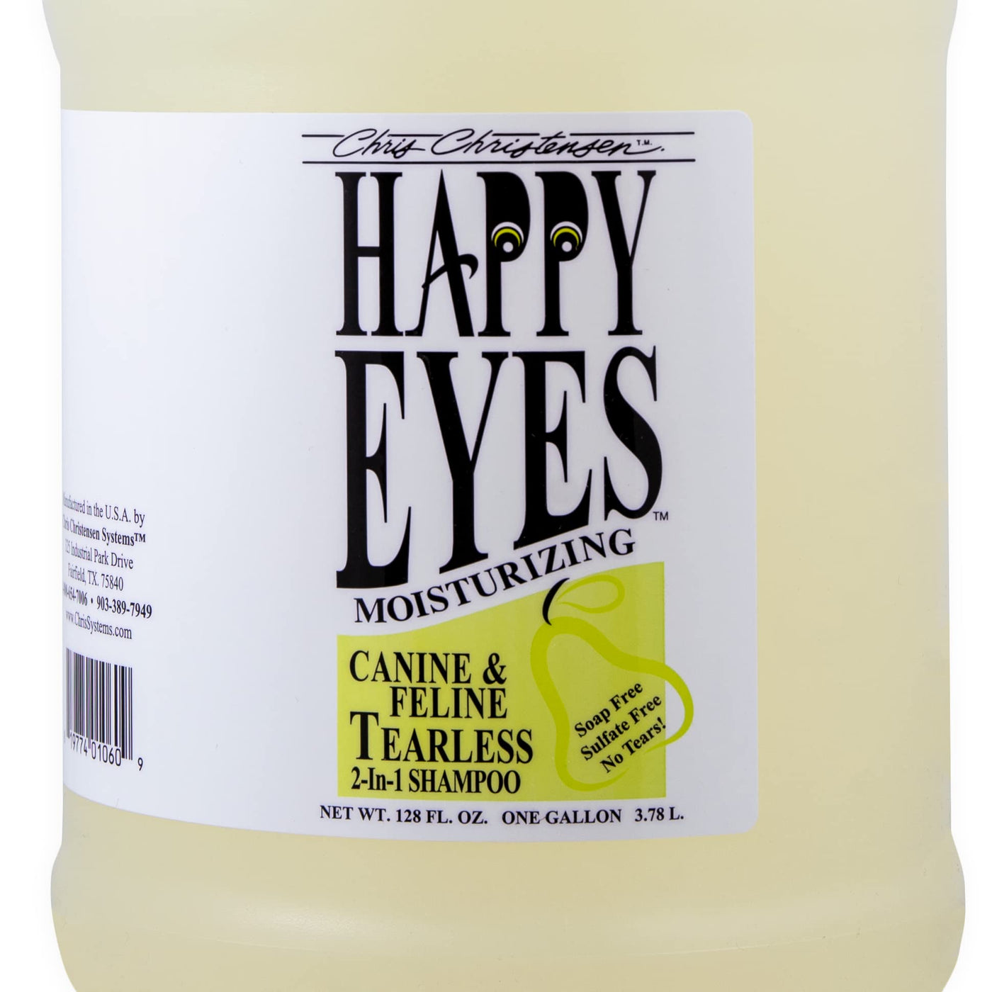 chris christensen Happy Eyes Tearless Shampoo is a 2-in-1 shampoo and conditioner enriched with Panthenol Happy Eyes gently cleans delicate coats and skin without irritating the eyes This soap-free formula leaves the coat manageable shiny and soft chris christensen Happy Eyes tearless shampoo is infused with aromatic Bartlett Pear for a lovely long-lasting fragrance