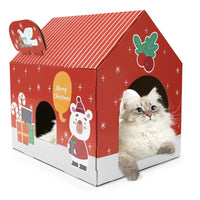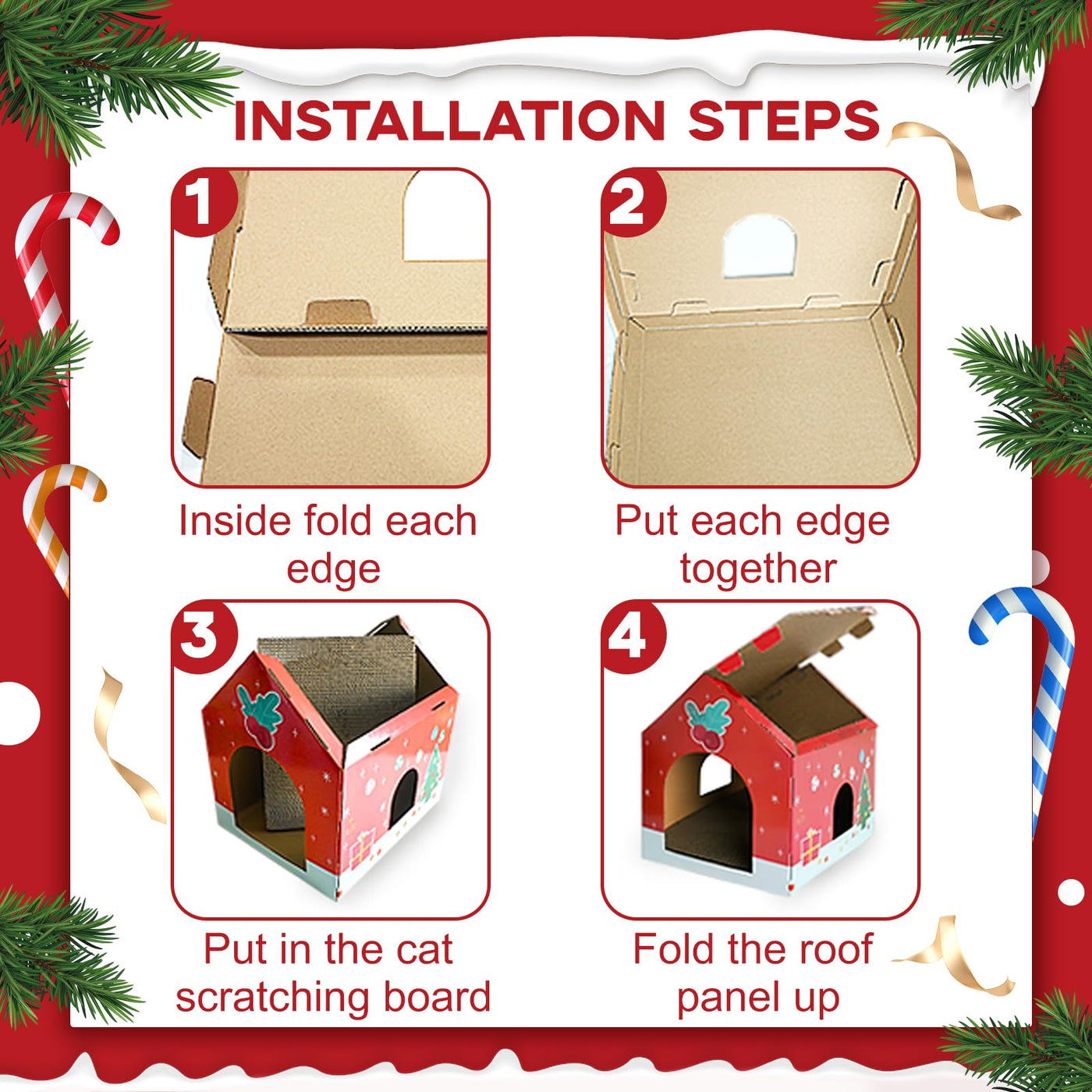 Christmas Cardboard Cat House With Scratching Pad (15''X12''X15'') Cat Play House For Indoor Cats, Christmas Decorations Scratch