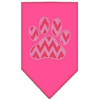 Christmas Pet and Dog Bandana Rhinestone, "Candy Cane Chevron Paw" Bright Pink Large