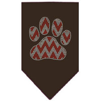Christmas Pet and Dog Bandana Rhinestone, "Candy Cane Chevron Paw" Brown Large
