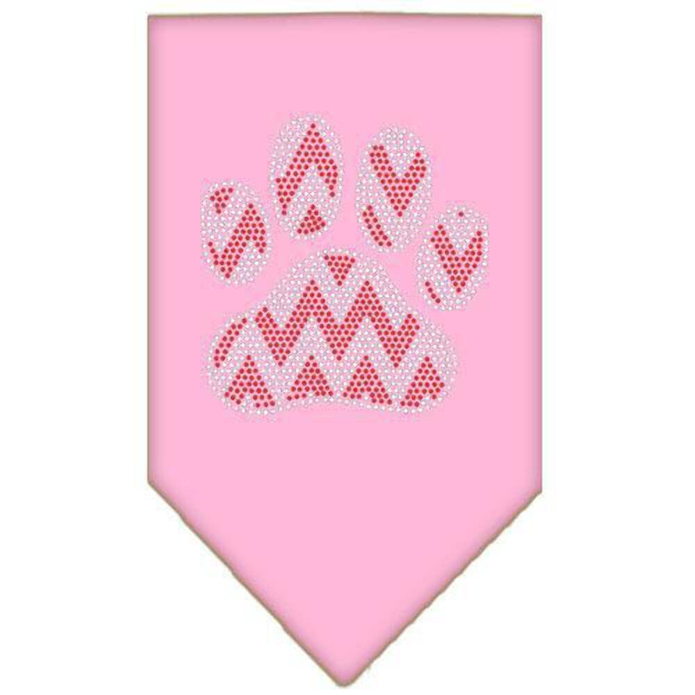 Christmas Pet and Dog Bandana Rhinestone, "Candy Cane Chevron Paw" Light Pink Small