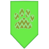 Christmas Pet and Dog Bandana Rhinestone, "Candy Cane Chevron Paw" Lime Green Small