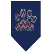 Christmas Pet and Dog Bandana Rhinestone, "Candy Cane Chevron Paw" Navy Blue Large