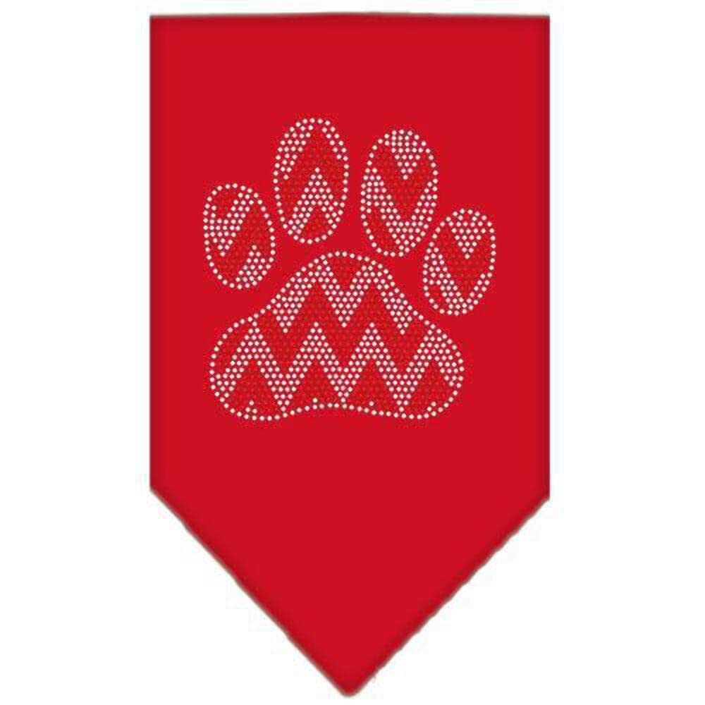 Christmas Pet and Dog Bandana Rhinestone, "Candy Cane Chevron Paw" Red Small
