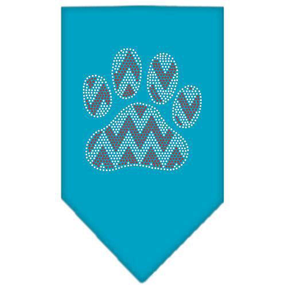 Christmas Pet and Dog Bandana Rhinestone, "Candy Cane Chevron Paw" Turquoise Small