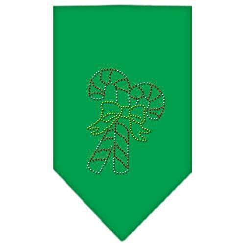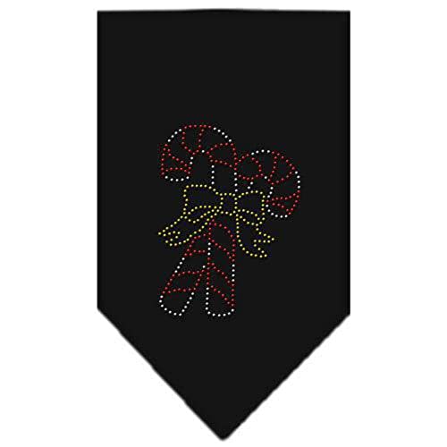 Q: What makes this bandana a great gift for pets during the holiday season?A: This bandana features a festive 'Candy Canes' design, adding a fun and stylish touch to your pet's holiday attire. Its durable cotton material and unique rhinestone embellishments make it a thoughtful and practical gift for any pet lover.