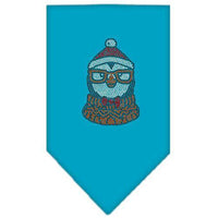 Christmas Pet and Dog Bandana Rhinestone, "Hipster Penguin" Turquoise Small