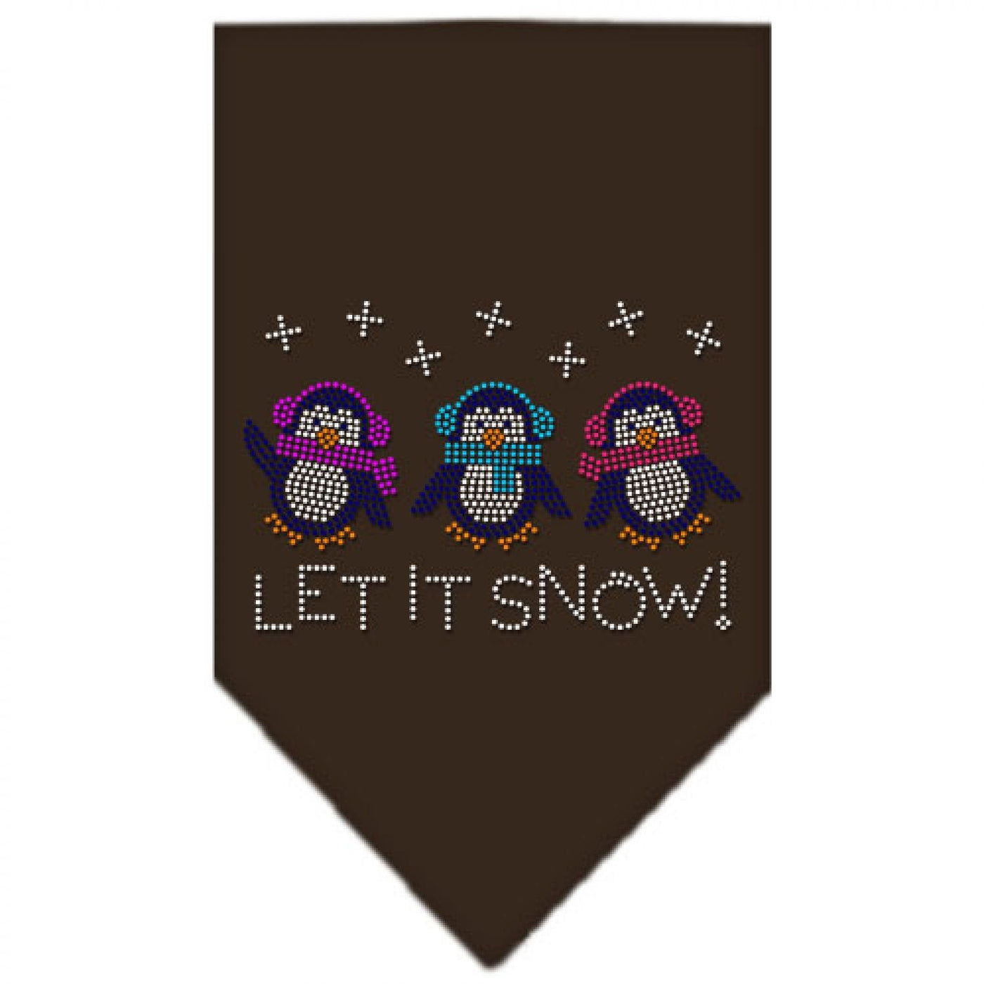 Christmas Pet and Dog Bandana Rhinestone, "Let It Snow Penguins" Cocoa Large
