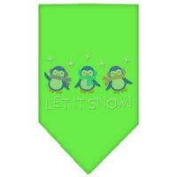 Christmas Pet and Dog Bandana Rhinestone, "Let It Snow Penguins" Lime Green Large
