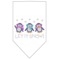 Christmas Pet and Dog Bandana Rhinestone, "Let It Snow Penguins" White Large