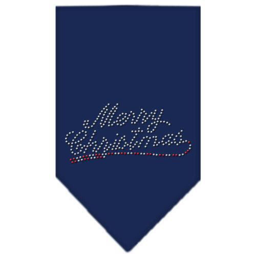 Christmas Pet and Dog Bandana Rhinestone, "Merry Christmas" Navy Blue Large