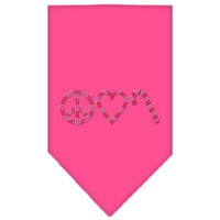 Christmas Pet and Dog Bandana Rhinestone, "Peace, Love & Candy Canes" Bright Pink Large