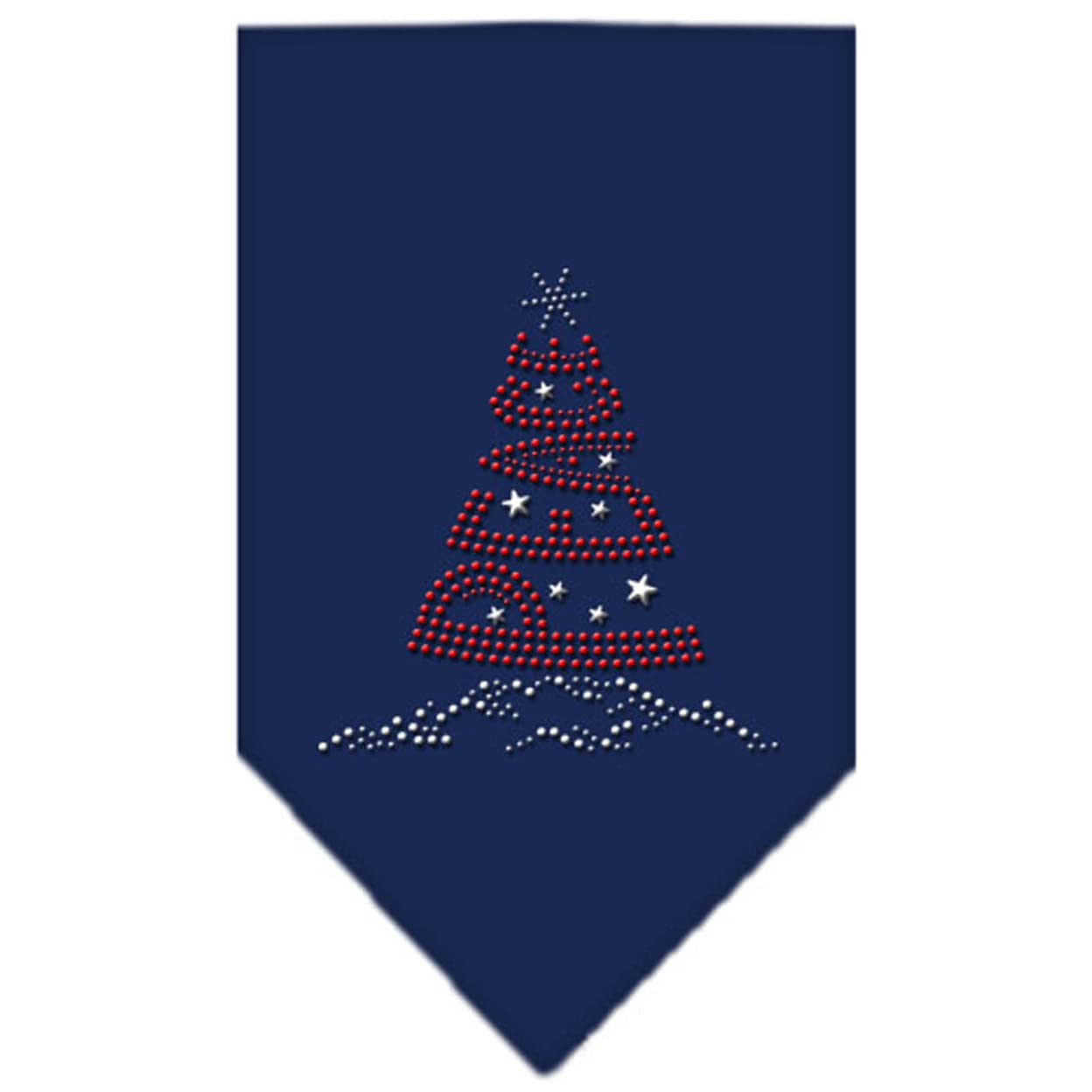 Christmas Pet and Dog Bandana Rhinestone, "Peace Tree" Navy Blue Large