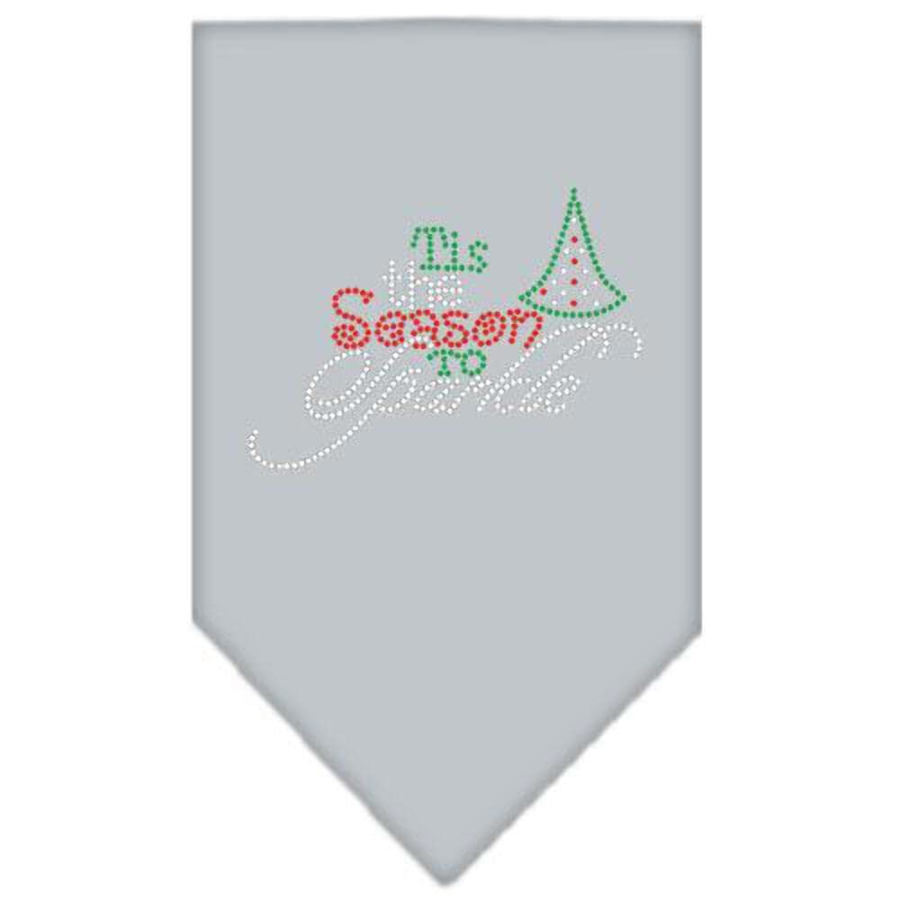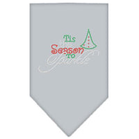 Christmas Pet and Dog Bandana Rhinestone, "Tis The Season To Sparkle" Grey Small