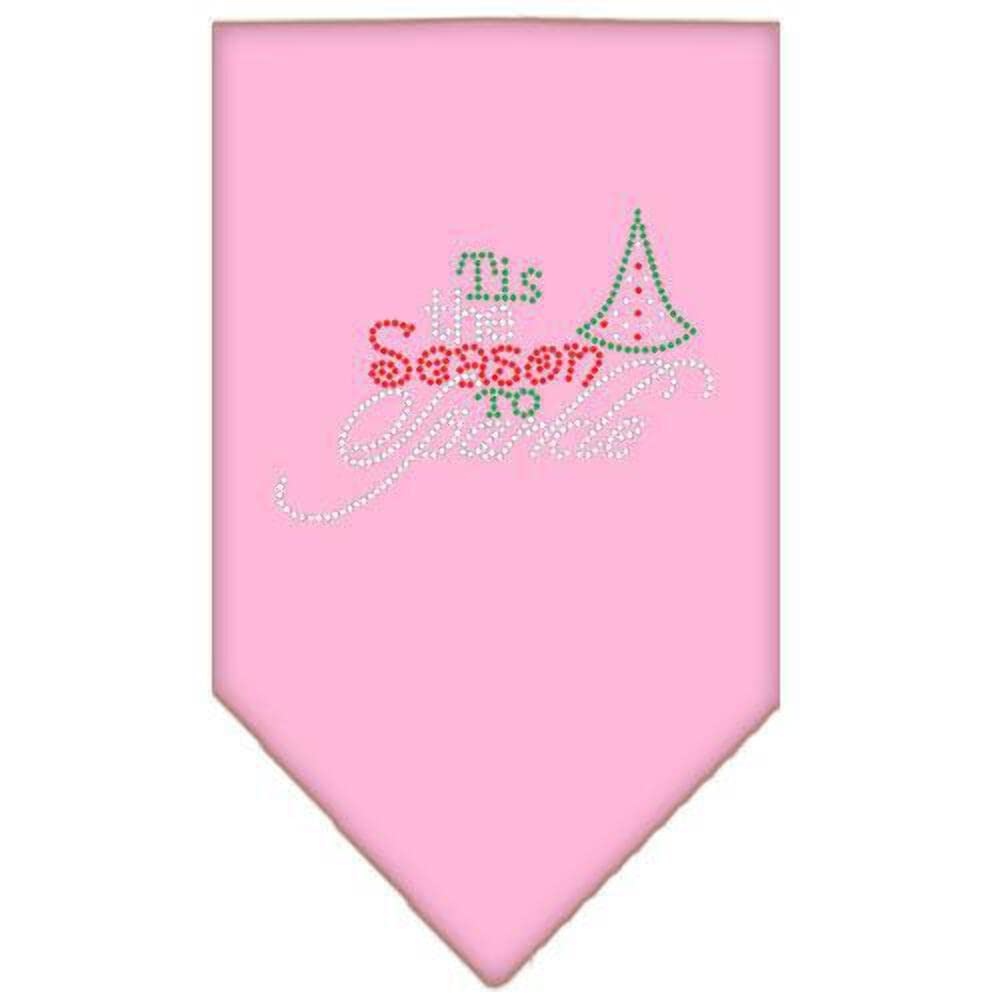 Christmas Pet and Dog Bandana Rhinestone, "Tis The Season To Sparkle" Light Pink Large