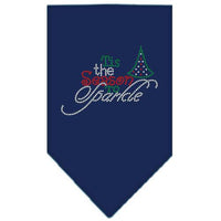 Christmas Pet and Dog Bandana Rhinestone, "Tis The Season To Sparkle" Navy Blue Large