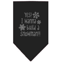 Christmas Pet and Dog Bandana Rhinestone, "Yes! I Want To Build A Snowman" Black Small