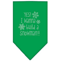 Christmas Pet and Dog Bandana Rhinestone, "Yes! I Want To Build A Snowman" Emerald Green Small