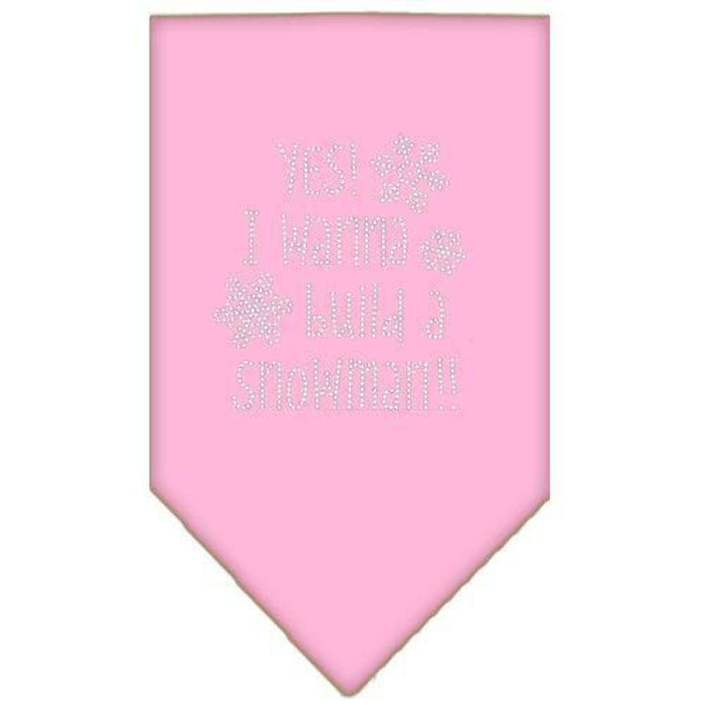 Christmas Pet and Dog Bandana Rhinestone, "Yes! I Want To Build A Snowman" Light Pink Large
