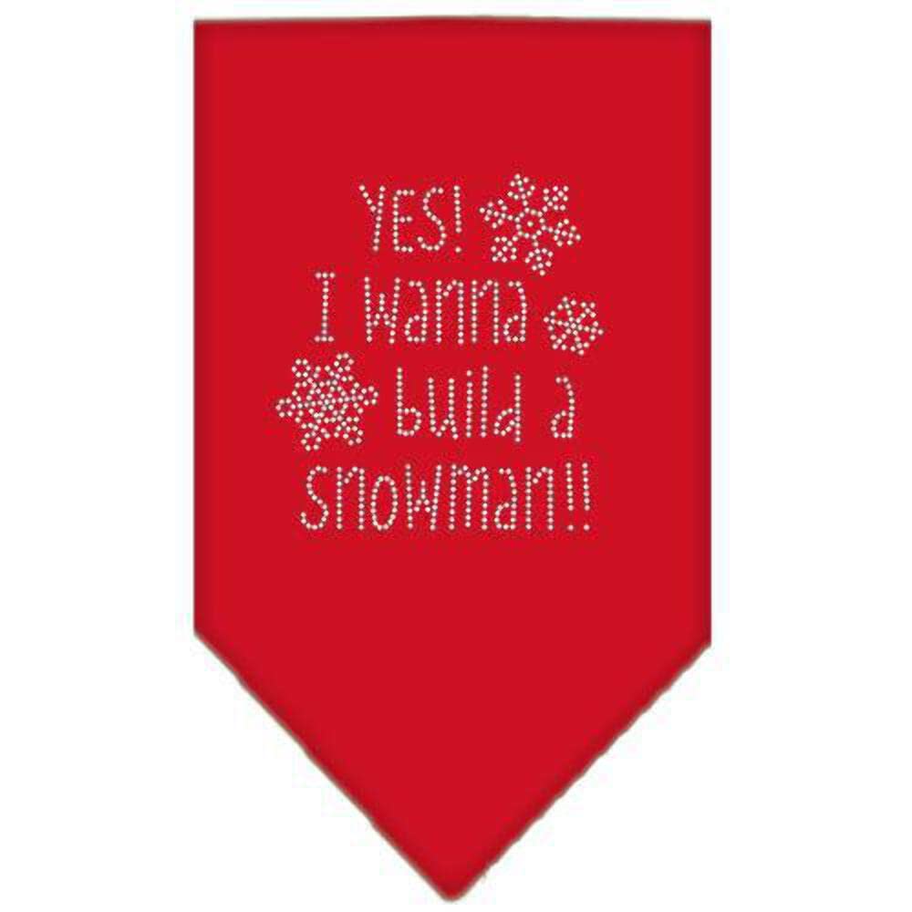 Christmas Pet and Dog Bandana Rhinestone, "Yes! I Want To Build A Snowman" Red Small