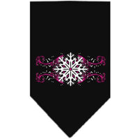 Christmas Pet and Dog Bandana Screen Printed, Pink Snowflake Swirls Black Large