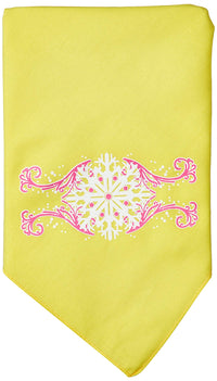Christmas Pet and Dog Bandana Screen Printed, Pink Snowflake Swirls Yellow Small