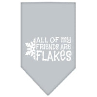 Christmas Pet and Dog Bandana Screen Printed, "All Of My Friends Are Flakes" Grey Small