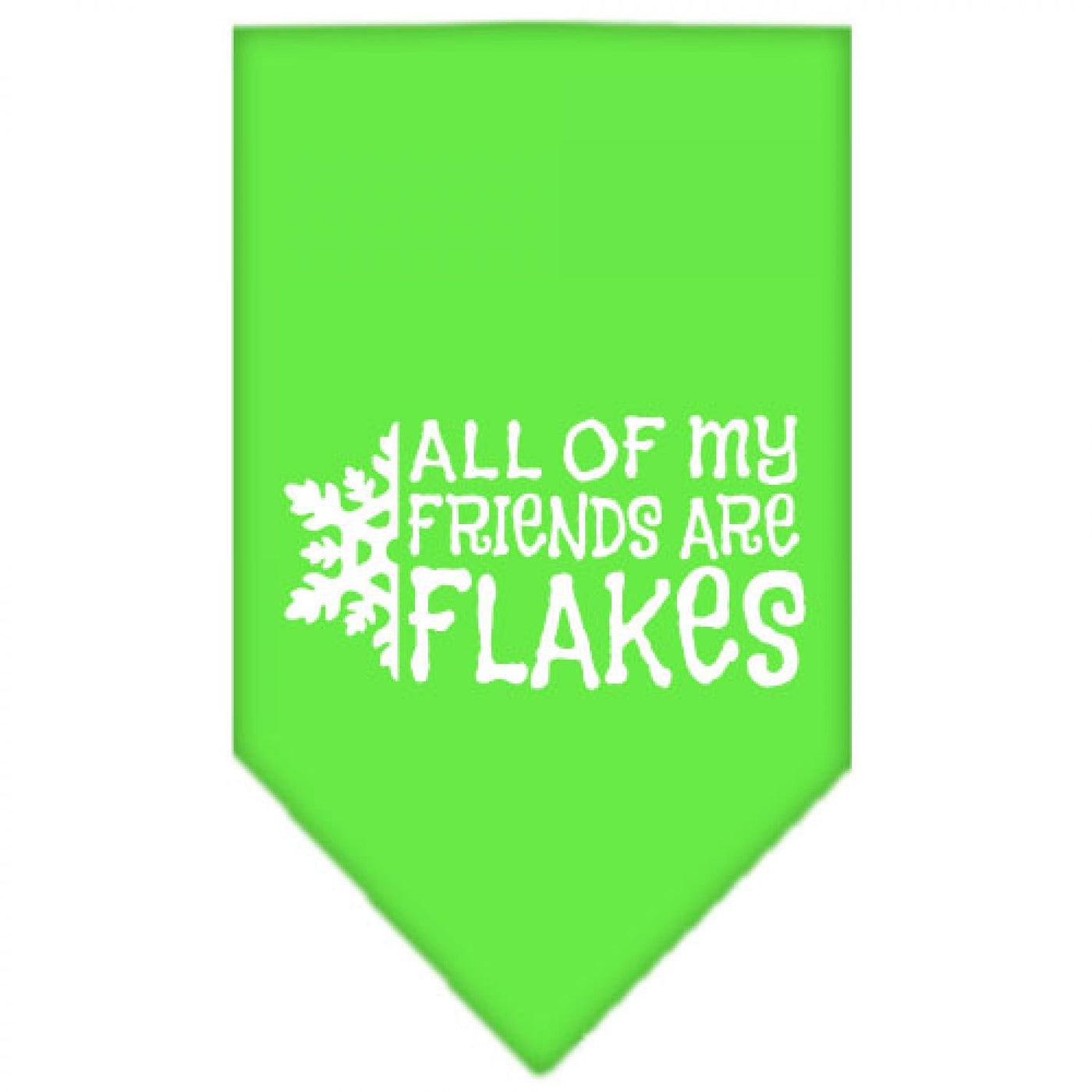 Christmas Pet and Dog Bandana Screen Printed, "All Of My Friends Are Flakes" Lime Green Large