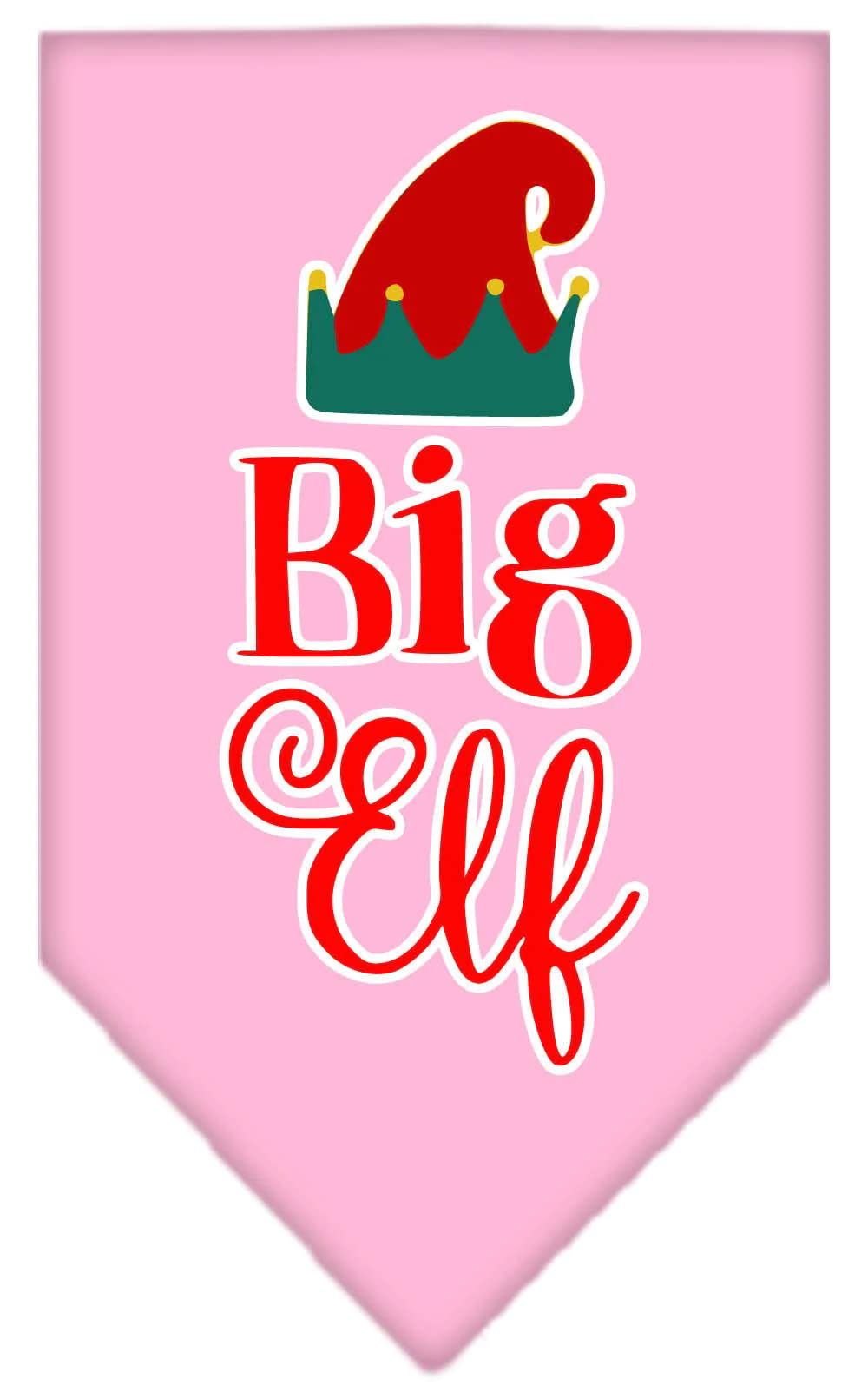 Christmas Pet and Dog Bandana Screen Printed, "Big Elf" Light Pink Small
