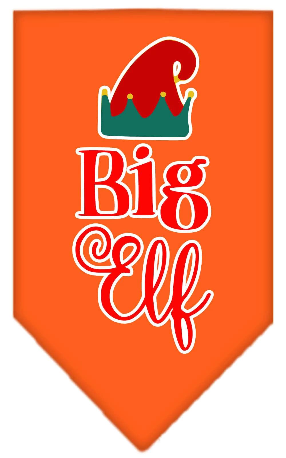 Christmas Pet and Dog Bandana Screen Printed, "Big Elf" Orange Large
