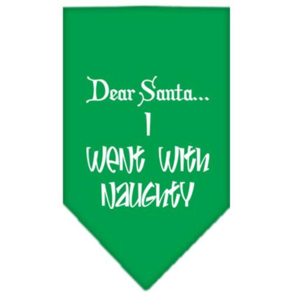 Christmas Pet and Dog Bandana Screen Printed, "Dear Santa... I Went With Naughty" Emerald Green Small
