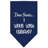Christmas Pet and Dog Bandana Screen Printed, "Dear Santa... I Went With Naughty" Navy Blue Small