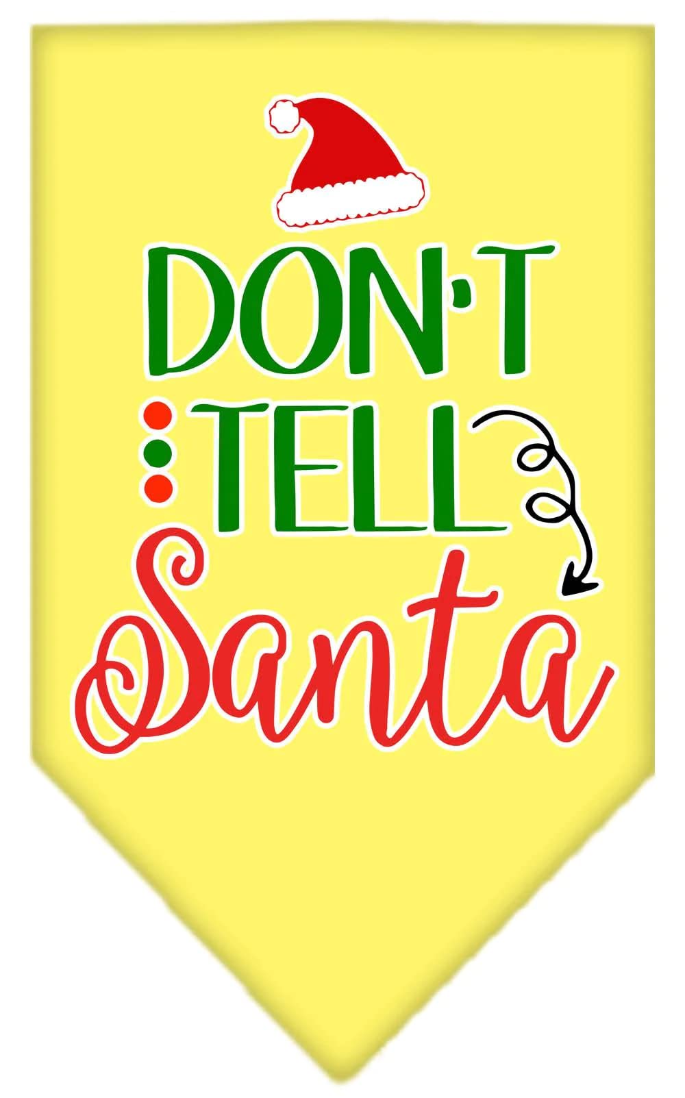 Christmas Pet and Dog Bandana Screen Printed, "Don't Tell Santa" Yellow Small