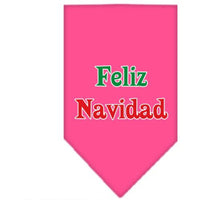 Christmas Pet and Dog Bandana Screen Printed, "Feliz Navidad" Bright PInk Small