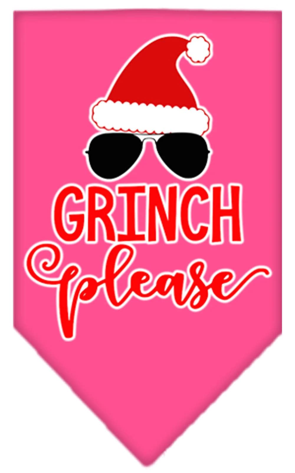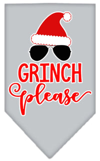 Christmas Pet and Dog Bandana Screen Printed, "Grinch Please" Grey Small