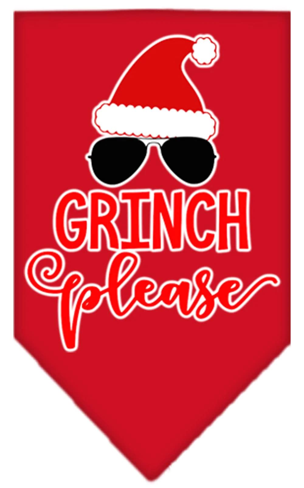 Christmas Pet and Dog Bandana Screen Printed, "Grinch Please" Red Small