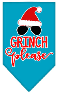 Christmas Pet and Dog Bandana Screen Printed, "Grinch Please" Turquoise Large