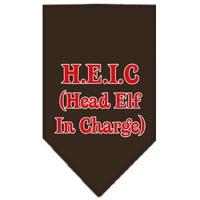 Christmas Pet and Dog Bandana Screen Printed, "Head Elf In Charge" Cocoa Large