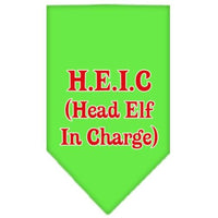 Christmas Pet and Dog Bandana Screen Printed, "Head Elf In Charge" Lime Green Small