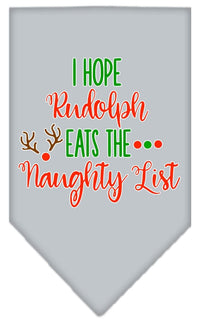 Christmas Pet and Dog Bandana Screen Printed, "Hope Rudolph Eats The Naughty List" Grey Large