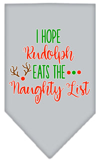 Christmas Pet and Dog Bandana Screen Printed, "Hope Rudolph Eats The Naughty List" Grey Small