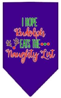 Christmas Pet and Dog Bandana Screen Printed, "Hope Rudolph Eats The Naughty List" Purple Large