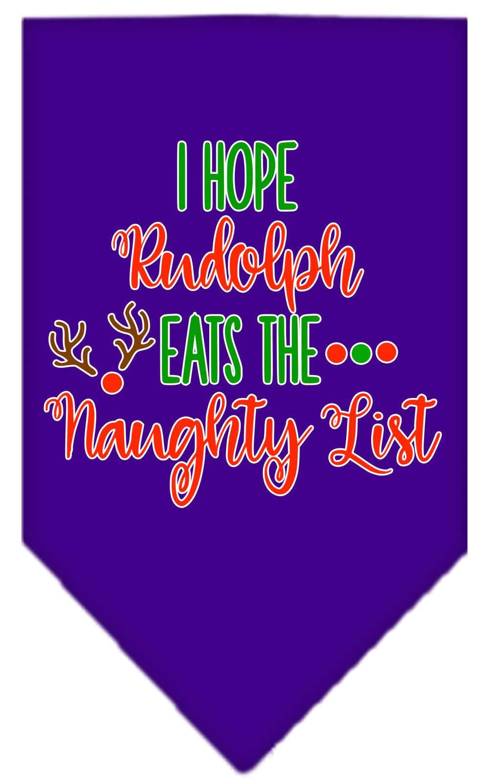 Christmas Pet and Dog Bandana Screen Printed, "Hope Rudolph Eats The Naughty List" Purple Small