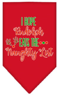 Christmas Pet and Dog Bandana Screen Printed, "Hope Rudolph Eats The Naughty List" Red Small