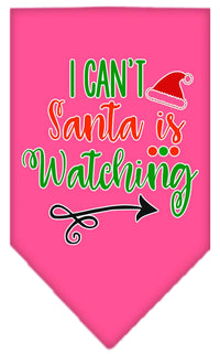 Christmas Pet and Dog Bandana Screen Printed, "I Can't, Santa Is Watching" Bright Pink Large