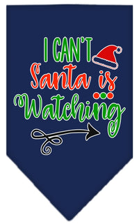 Christmas Pet and Dog Bandana Screen Printed, "I Can't, Santa Is Watching" Navy Blue Large